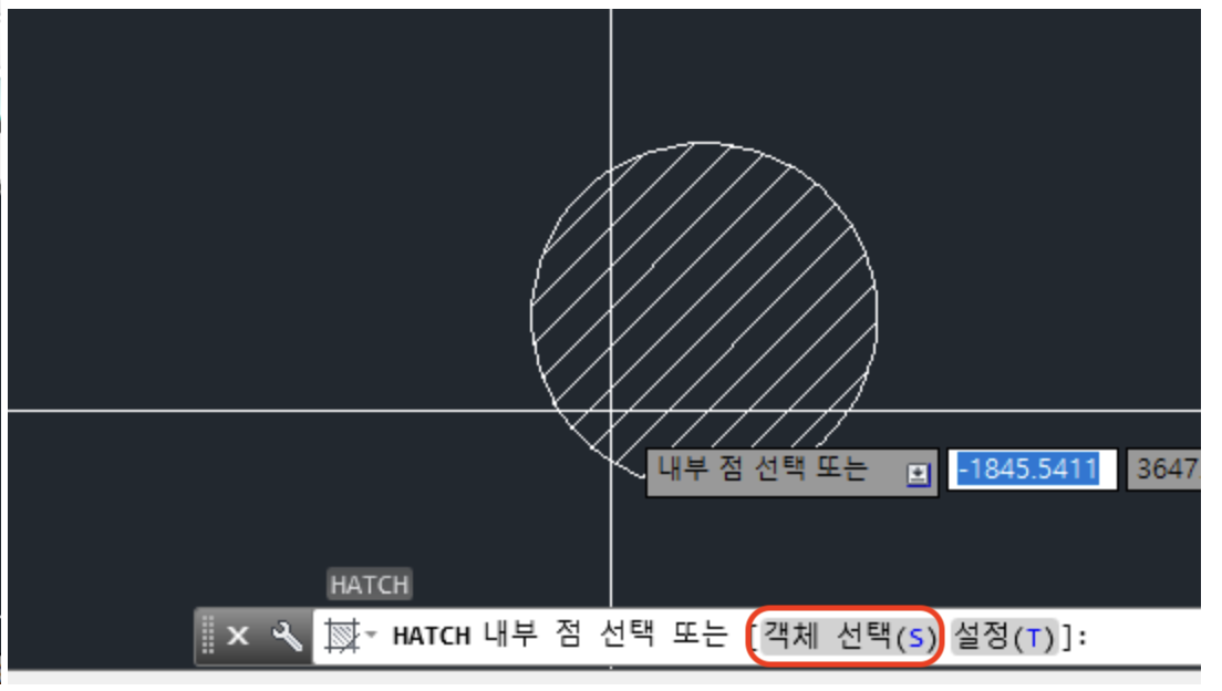 이렇게 원을 클릭하면 자동으로 해치가 넣어진다.