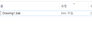 (유형도 bak 파일에서 dwg 파일로 변한것을 확인 가능하다)