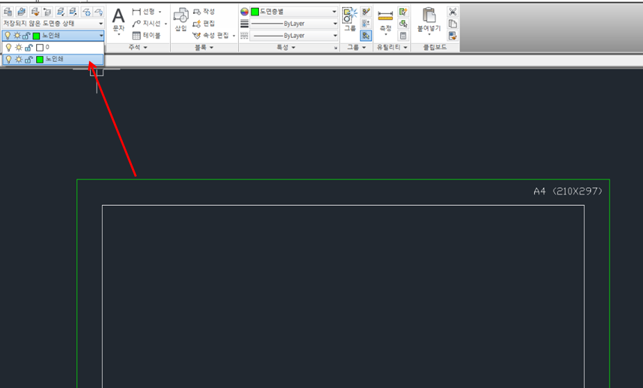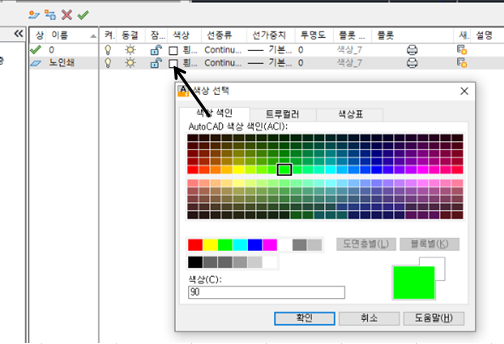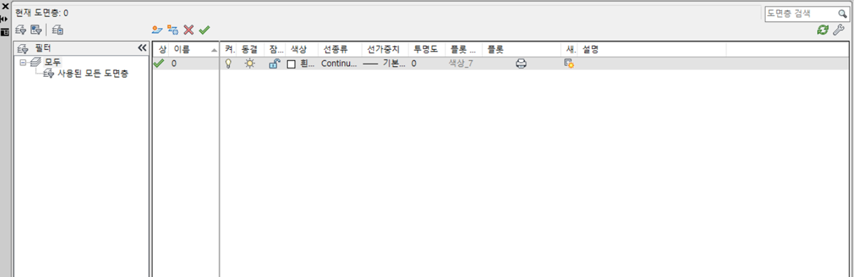 도면층 특성을 누르면 아래와 같이 도면층(layer) 특성 창이 나온다.