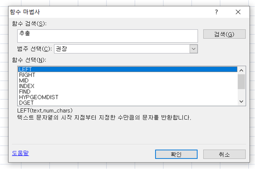 1) LEFT 함수 =LEFT( 셀, N번째 숫자 )