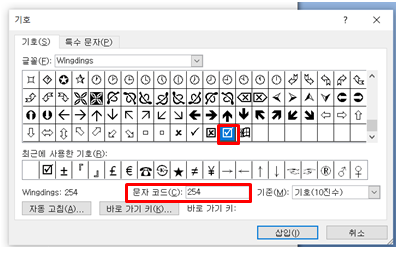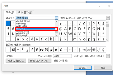 동일하게 기호 삽입에서 WINGS 에서 선택