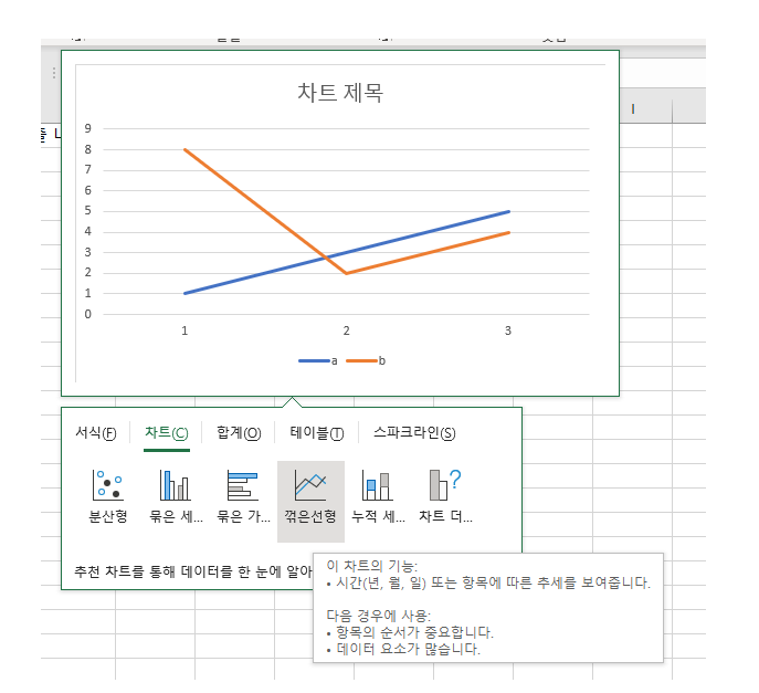 그중 오늘 새롭게 알게된 너무나 편리한 기능 "빠르게 차트 만들기"