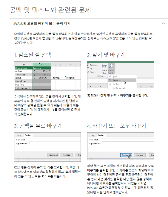 수식이 공백을 포함하는 다른셀을 참조하거나, 더욱 까다롭게는 숨겨진 공백을 포함하는 다른셀을 참조하는경우 #VALUE!오류가 발생할수 있습니다.