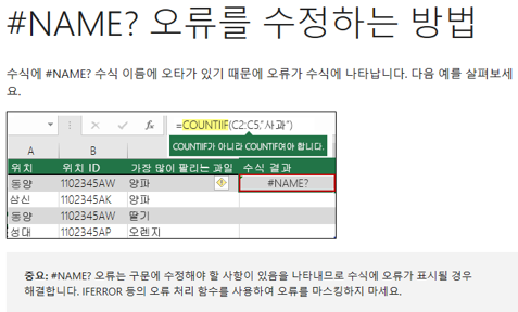 수식에 #NAME? 수식 이름에 오타가 있기 때문에 오류가 수식에 나타납니다.